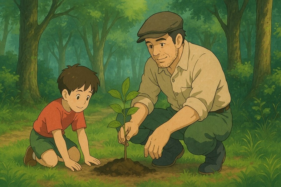 - ペカンの森をつくることで、荒れた地が自然に「還る」場所