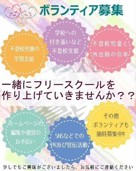 - 子供たちの笑顔を支える不登校支援☆及びフリースクールの運用ボランティアを募集☆
