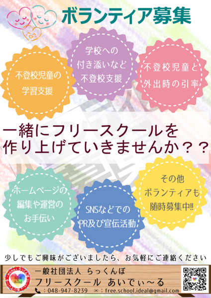 子供たちの笑顔を支える不登校支援☆及びフリースクールの運用ボランティアを募集☆