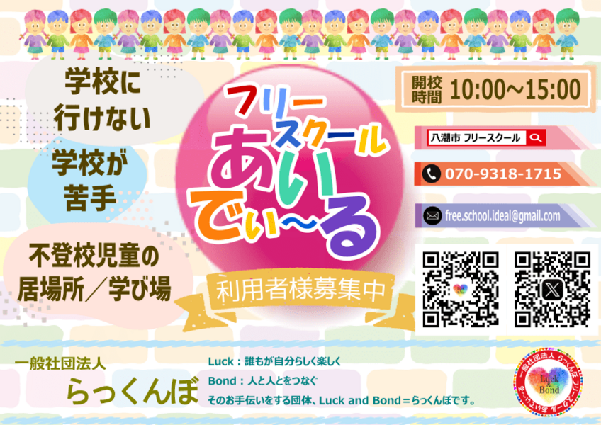 少しでも不登校児童や不登校児童の親御さんが安心して過ごせる場所、同じ境遇の人がいる、味方がいるんだという事実を知ってもらいたく、フリースクールあいでぃ~るを始めました。