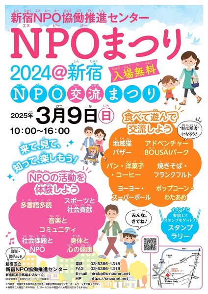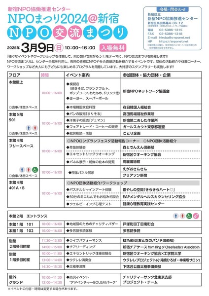 新宿NPO協働推進センターのNPO交流祭りのチラシです。私たちは、在日韓国人福祉会の韓国料理ブースでボランティアをすることになります。たくさんのイベントがやっていますので、行き帰りの空いた時間で、NPO交流祭りを楽しんで行ってください♪