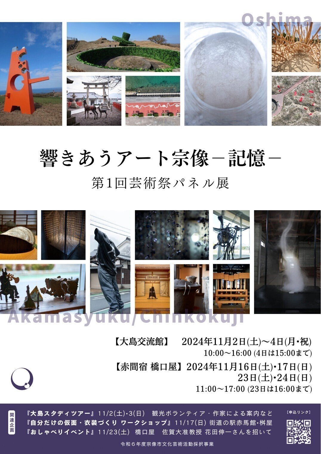 【大島会期】11月2日(土)~4日(月祝)【会場】大島交流館(※荒天欠航の為2日は休止) 【赤間宿会期】11月16(土)~17日(日)、 23日(土)~24日(日)【会場】赤間宿 橋口屋