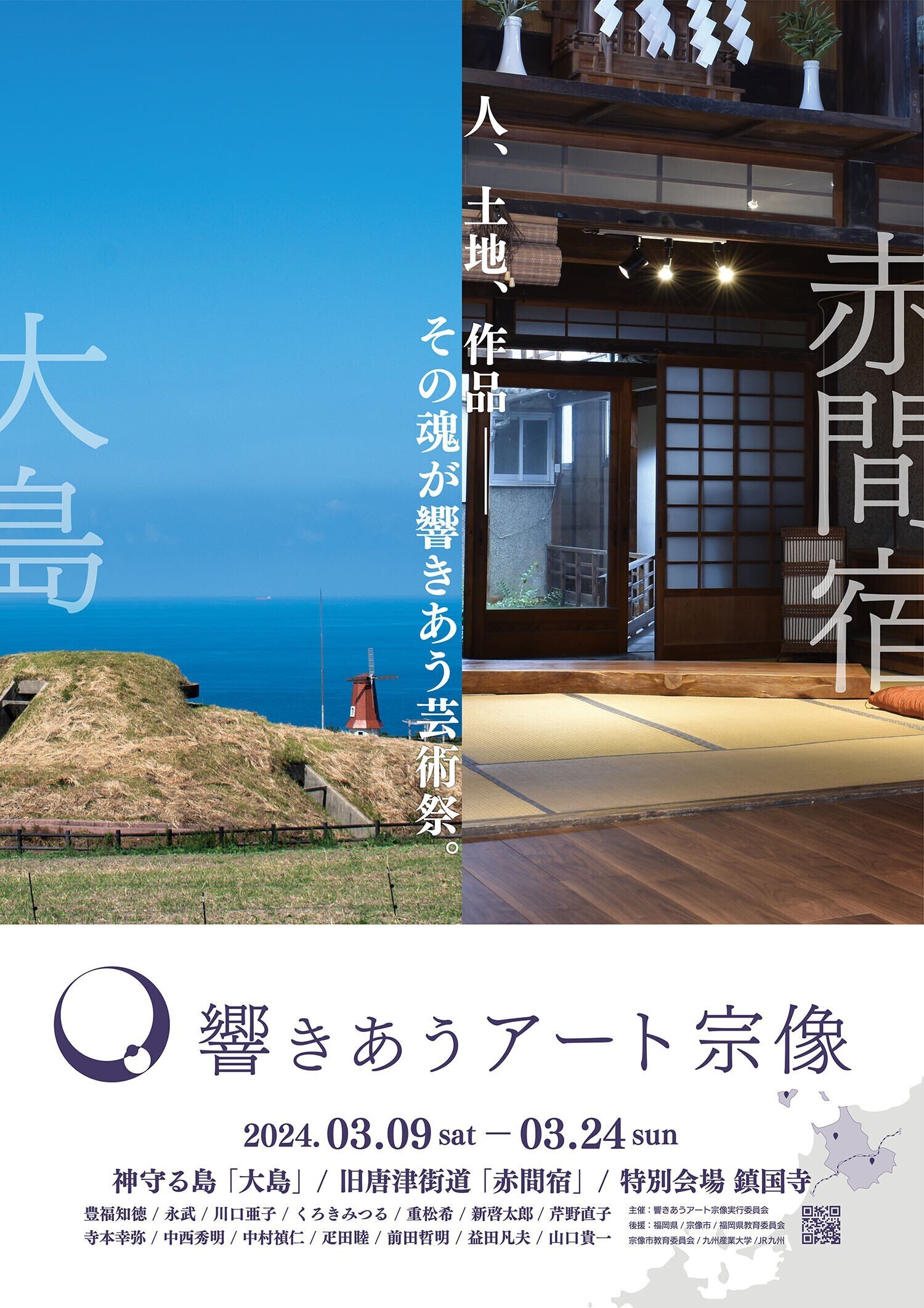【会期】3月9日(土)~3月24日(日) 【会場】大島、赤間宿、鎮国寺(特別会場) 【作家】14名 【学生展示】九州産業大学生&院生