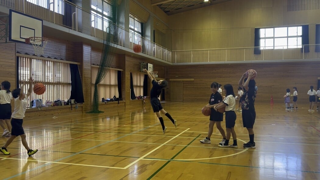 小学生バスケを担当しています。こどもたちにバスケを教えながら自分の練習にもなっています。将来、中学校教諭を目指しているので、この子達を受け持つかもしれないという気持ちで、自分のクラスの生徒のように接しています。(大学3年Sさん)