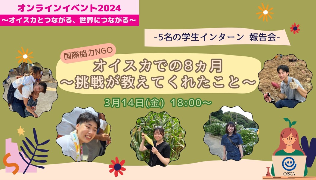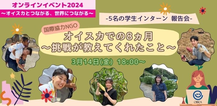 2024年度SOMPO環境財団のCSOラーニング制度※を通じてオイスカ(国際協力NGO)でインターンを行った学生5名が、それぞれの地域で経験した活動について報告します!