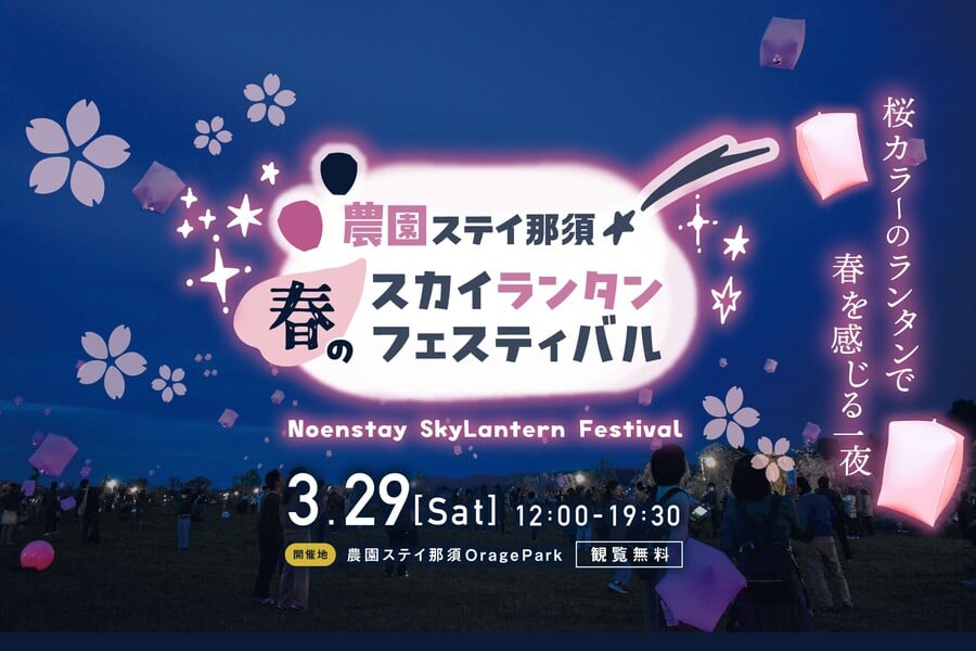 - 栃木県那須町【農園ステイ那須】で桜カラーのスカイランタンイベントを開催