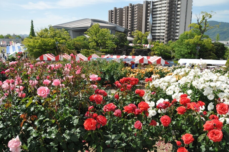 福山ばら祭は戦後、まちに希望を与え、人びとの心に安らぎと潤いを取り戻そう、という想いを持った方々が公園にばらを植え始めたことにより始まりました。そして、現在の福山ばら祭は、福山市最大のイベントとして、多くの市民を笑顔にしています。
