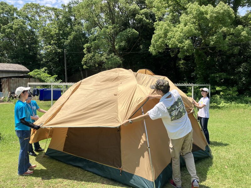 ■楽しく活動しつつも、8月に自分がリーダーになることを想像しながら参加できた。テントの組み立てやロープワークの実習など、実践的な学びも多くあったが、キャンプファイヤーの時の先輩方の振る舞いから得られたものが多かった。コミュニケーションや気の配り方など、事業団の活動以外でも参考にしたいと思った。(奈良県立大学)