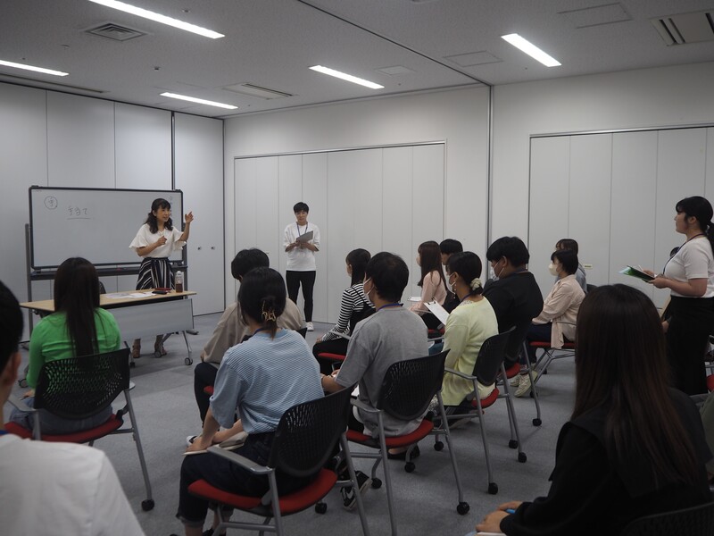 ■最初は不安でしたが、盛り上がる雰囲気や先輩たちがフレンドリーにお話してくれたおかげで、自然と自分の素を出すことができました。また、本番では子どもたちがいるため、先輩たちは「ここに子どもがいた時はどうするか」「子どもならこんな行動をするだろう」と言っていて、子どものことを第一に考えている団体なんだと感じました。先輩の子どもに対する配慮を見つけて、なぜそうするのか、自分ならどうするかを考えていきたいです。(摂南大学)