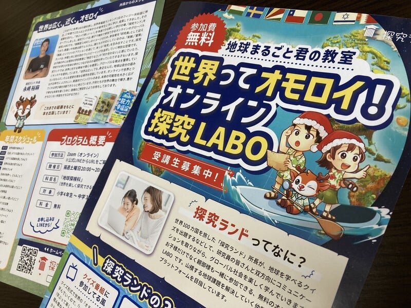 世界100カ国を旅した探究ランド所長が提供する「地球探検科」授業のアシスタントを募集。受講生である小中学生とその親御さんが「地球は自分の庭みたいなもんだ」と感じられる空間を創るサポートをお願いします
