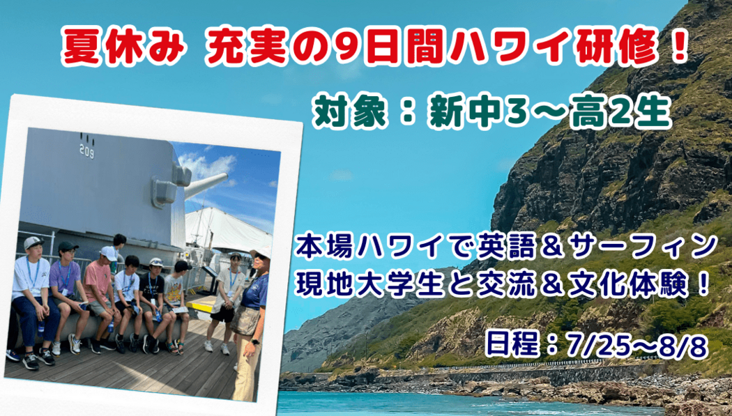 - 【締切間近:中3〜高2対象】夏休み、ハワイで英語を学びながら自然と文化を体験!