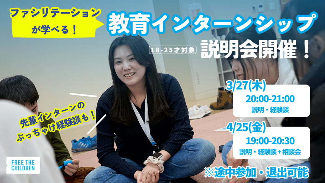 この募集の受入法人「認定NPO法人フリー・ザ・チルドレン・ジャパン」をフォローして、