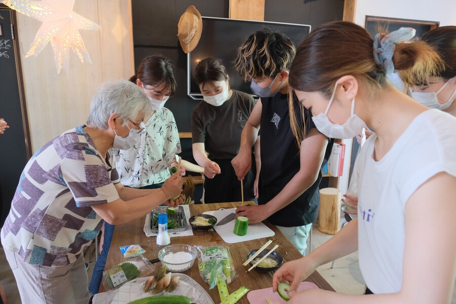地域の方々と一緒に、見よう見まねで民謡を踊ります。和太鼓の生演奏も相まって、終わるころには笑顔で地域の方々とお話しできるようになっているかも!?