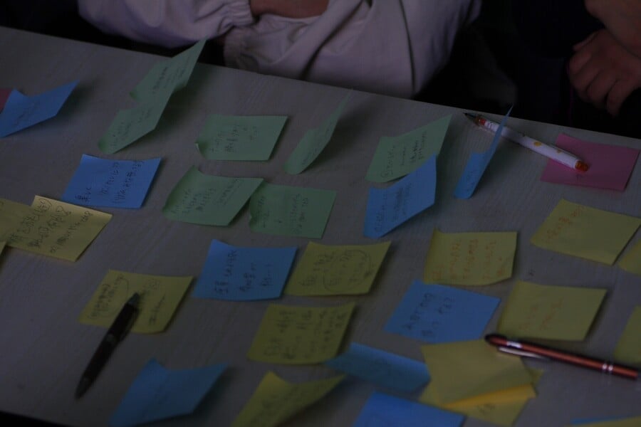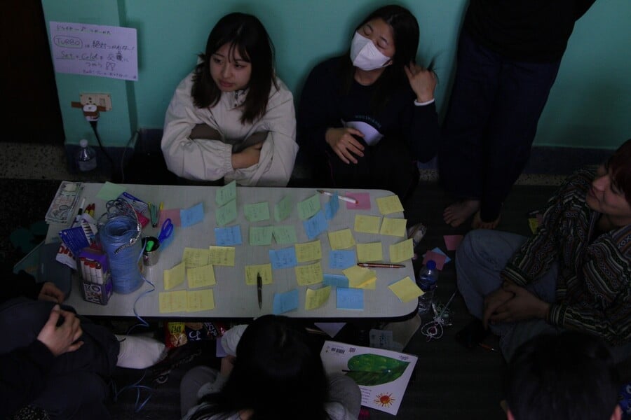宿に戻り、チームで意見を出し合いながら授業を組み立てます。専攻や学年は関係なし!メンバーそれぞれの強みを活かして、みんなで協力して授業をデザインします。