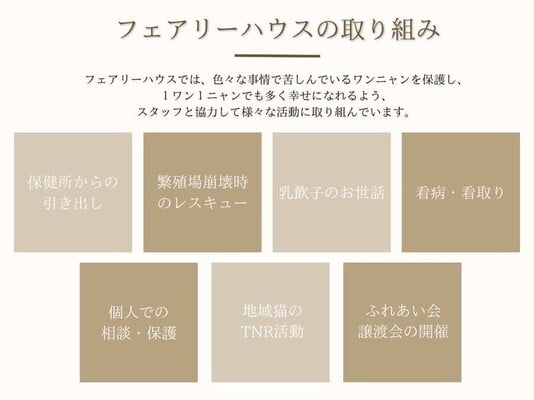 動物愛護団体フェアリーハウスの法人活動内容