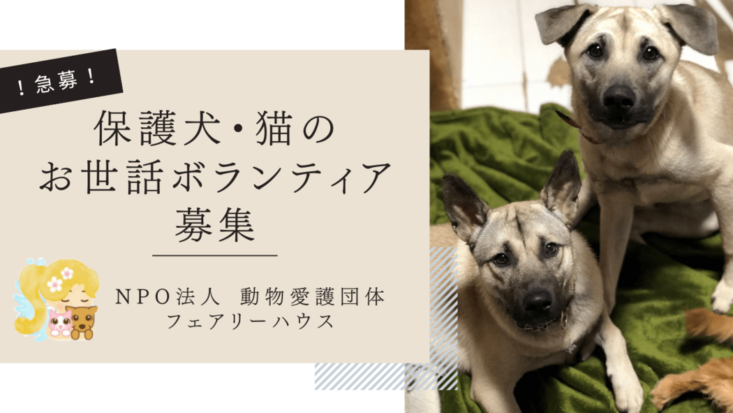 保護犬猫100頭のお世話ボランティアを募集します。10代〜50代のスタッフが活動しています!犬猫に愛情をもって接することができる方、体力仕事になりますがお力を貸してください!