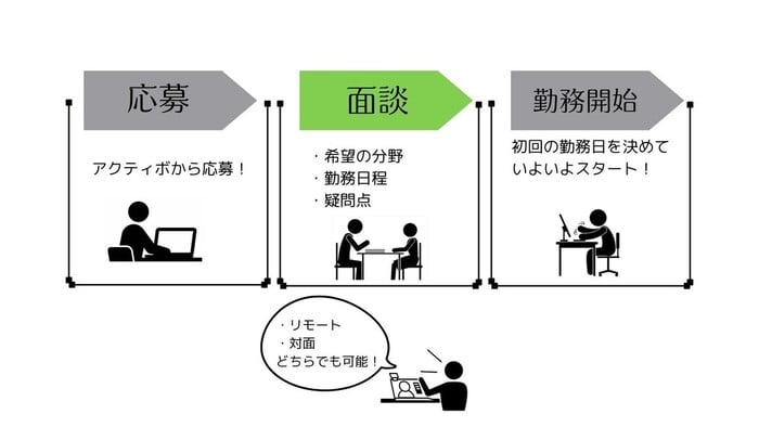 ※活動時間が確保できない場合や応募者が多数の場合、面談の内容を踏まえて、インターンへの参加をお断りする場合がございます。ご了承ください。