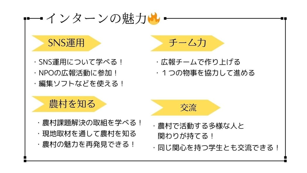 - 【SNSでの発信力が身に付く!】地域活性化の取組を発信する広報インターン
