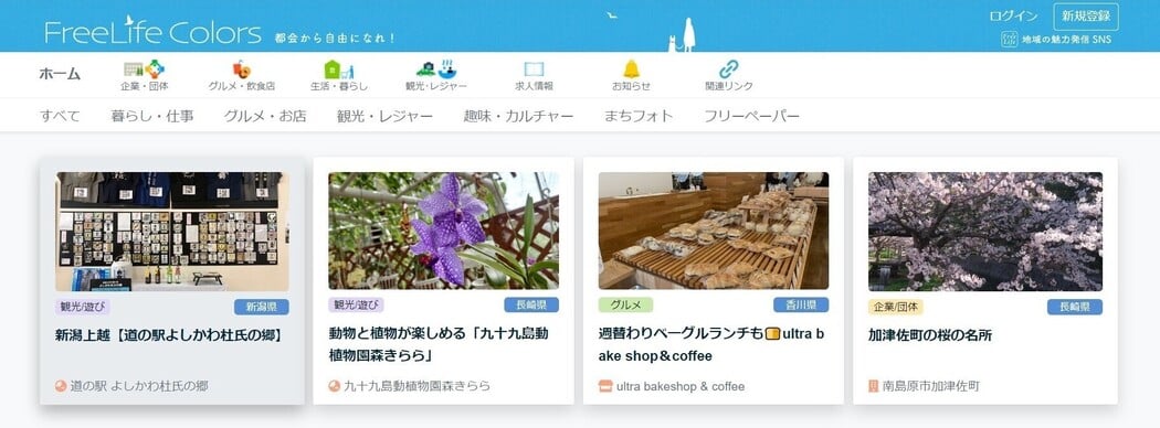 『フリーライフ・カラーズ』は、地域の魅力や自由で個性的なライフスタイルを広く発信するためのSNSサイト。