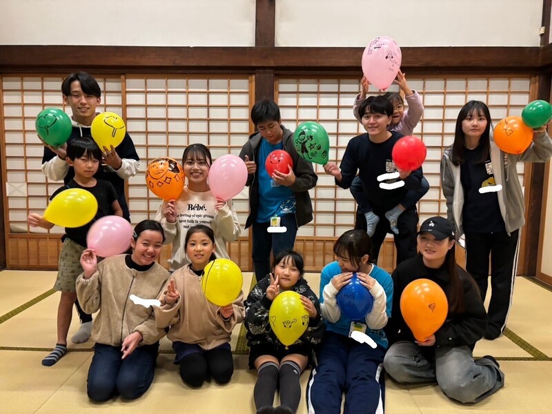 子どもたちと遊ぶことが好きな人! 一緒に活動する人の年齢層について子どもたち、大学生、てらこやの大人の方々、地域の方々 |