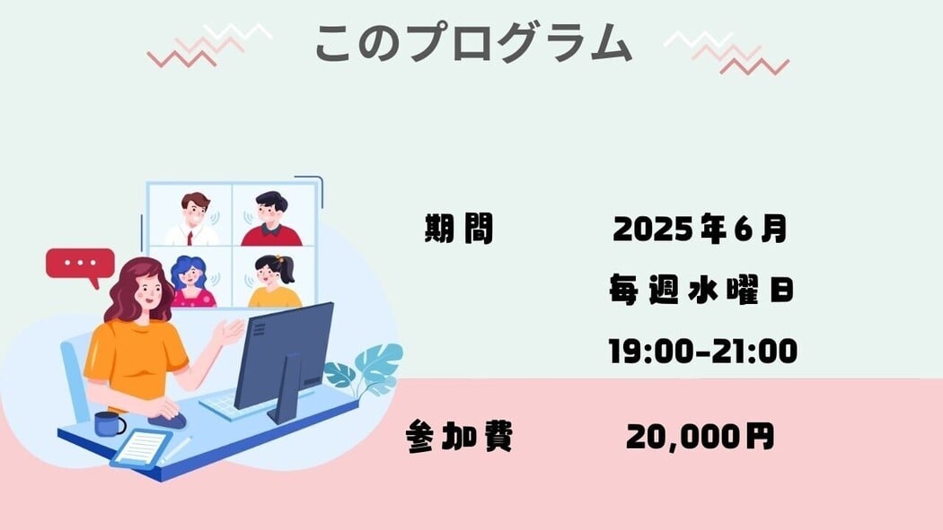 毎週水曜日19:00-21:00にオンラインにて開催。 |