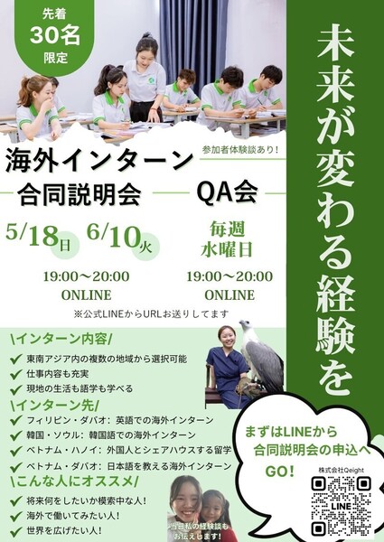 この募集の受入企業「株式会社Qeight」をフォローして、
