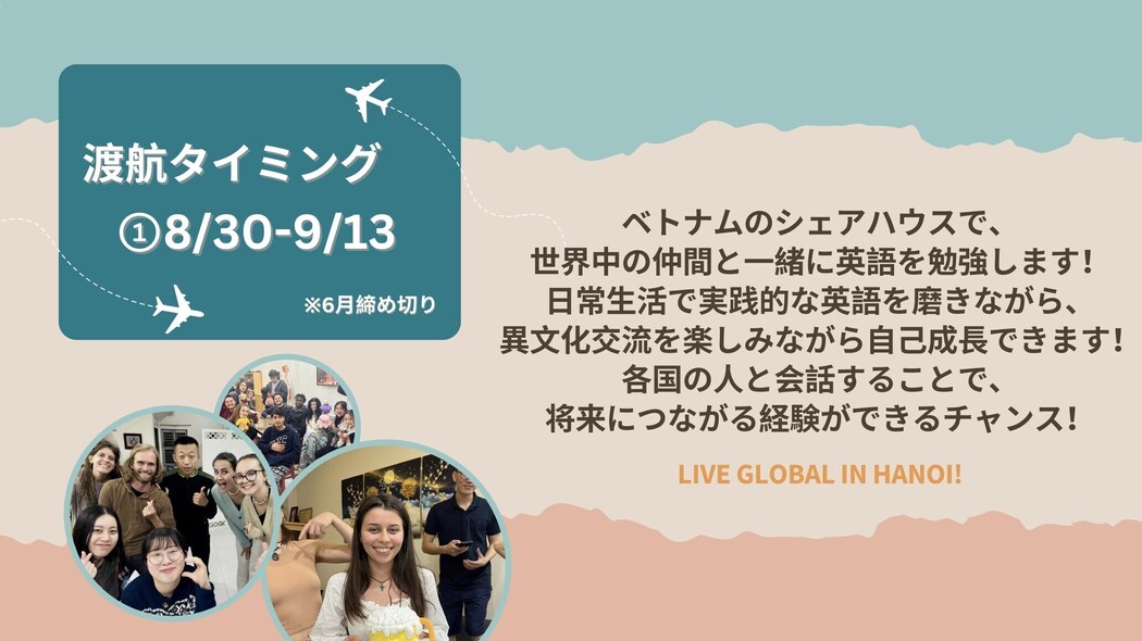 - 【8/15締切】世界の人と暮らして見つける自分探し留学 in ベトナム