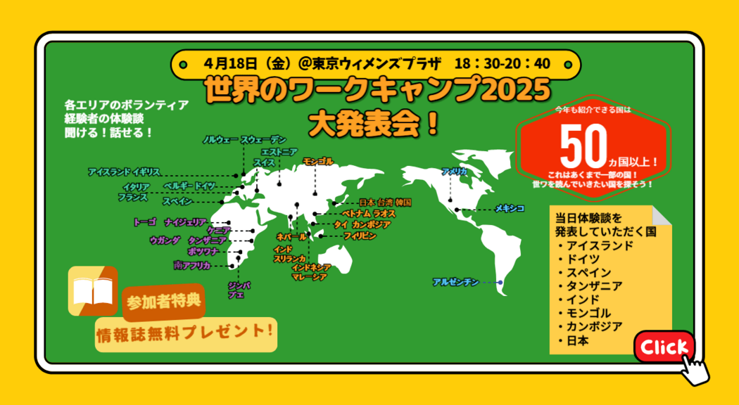 - ボランティア情報冊子「世界のワークキャンプ2025」大発表会@渋谷 無料配布!