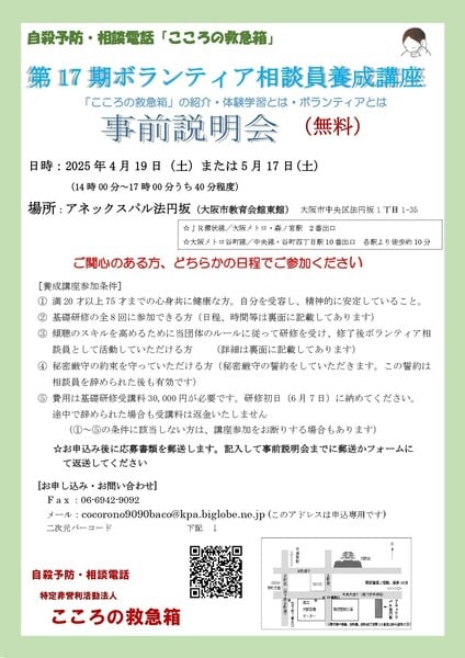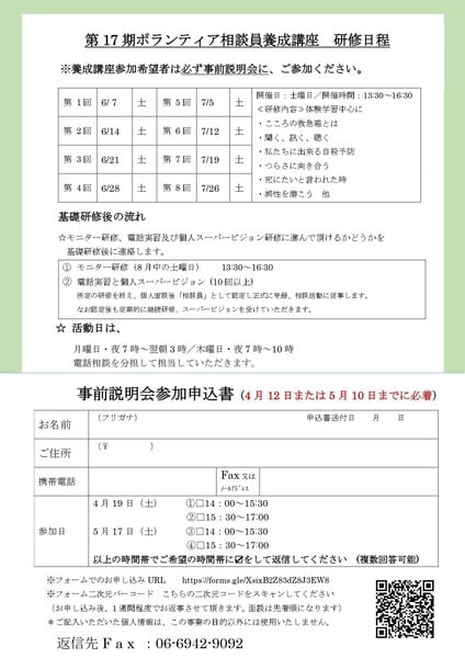 - 自殺予防「ボランティア相談員養成講座」事前説明会