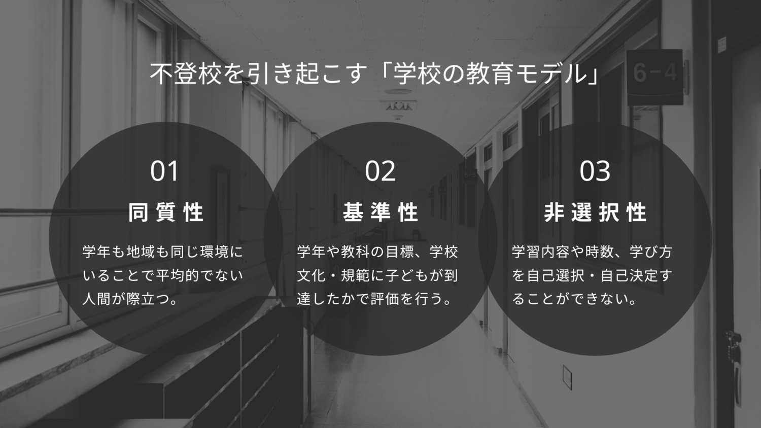 最大の問題は、学校に行けなくなった途端に、教育の質を約束できない仕組みにあるのです。