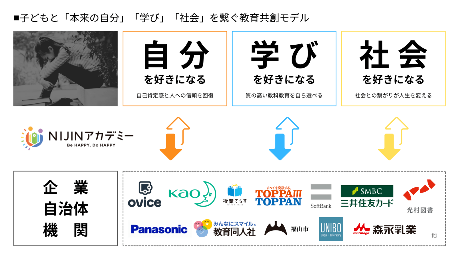 多様な社会のステークホルダーと連携をしながら、私たちの強み「教師力」を活かし、その子と「本来の自分」その子と「学び」その子と「社会」を繋ぎ、子どもが自分・学び・社会を好きになるように、教育を共に創っています。