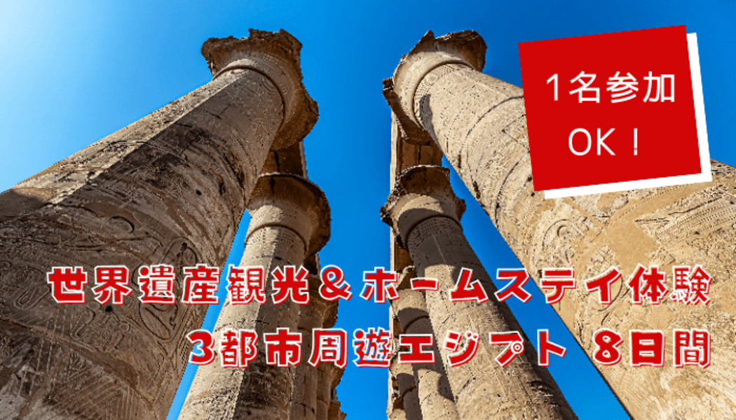 カイロ・ルクソール・アスワンで各1泊ホームステイ!ピラミッド、神殿群など世界遺産を巡り、現地の暮らしや文化を肌で感じる8日間のスタディツアー。日本語ガイド&専用車で安心!