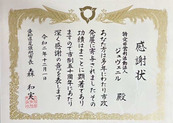 尾張旭市市制50周年記念感謝状を受ける