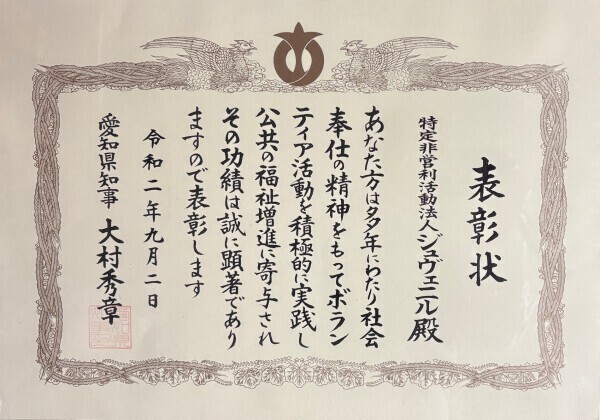 愛知県知事表彰(ボランティア活動)を受ける