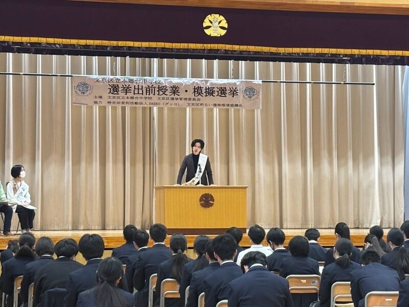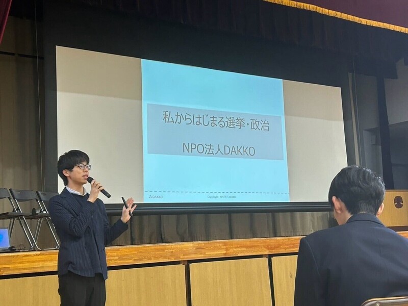 NPO法人DAKKOは、2012年設立(2020年に現名称変更)した「若い世代でつくる主権者教育団体」です。全国各地の自治体と協働し、社会について考える対話の場作りや政治体験のプログラムを展開しています。2024年3月に(公財)明るい選挙推進協会の「明るい選挙推進優良活動表彰」を受賞しました。