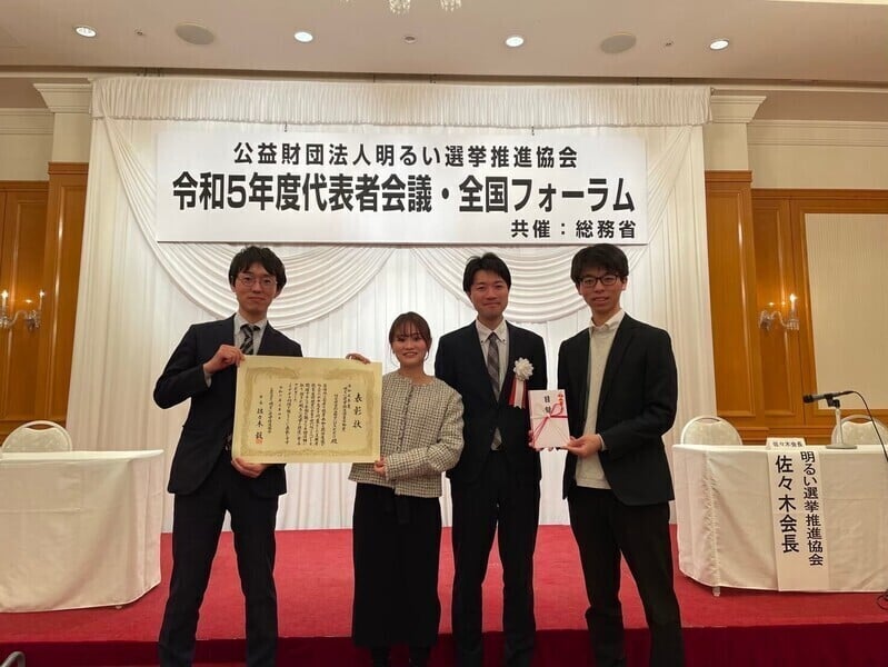 NPO法人DAKKOは「若い世代でつくる主権者教育団体」です。全国各地の自治体と協働し、社会について考える対話の場作りや政治体験のプログラムを展開しています。2024年3月に(公財)明るい選挙推進協会の「明るい選挙推進優良活動表彰」を受賞しました。