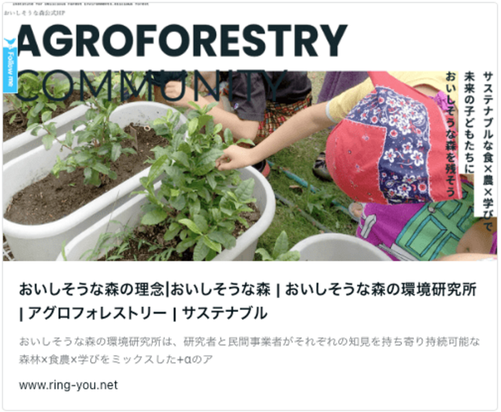 アグロフォレストリーシステム(おいしそうな森)を日本中に増やすことで農業・林業業界の底上げをはじめ、日本人の活力や食の安全を取り戻し未来の子どもたちに「おいしそうな森」を残していきたいと考えています