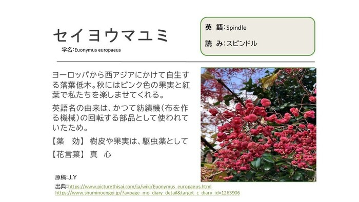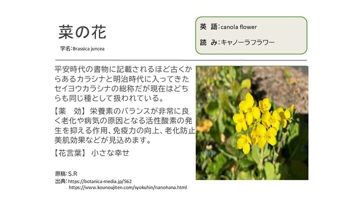 実施日に発見した動植物をスマポなどで写真に収め持ち帰り、調査(特徴・薬効・花言葉など)を行います。