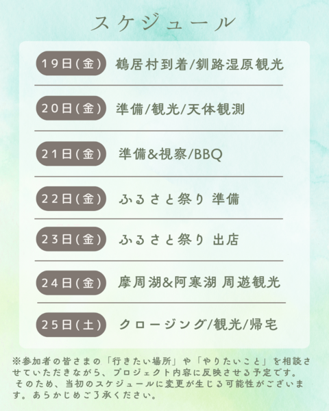 ●2024年鶴居村プロジェクトのプラン(去年の同一プログラムです。参考までにご覧ください。)