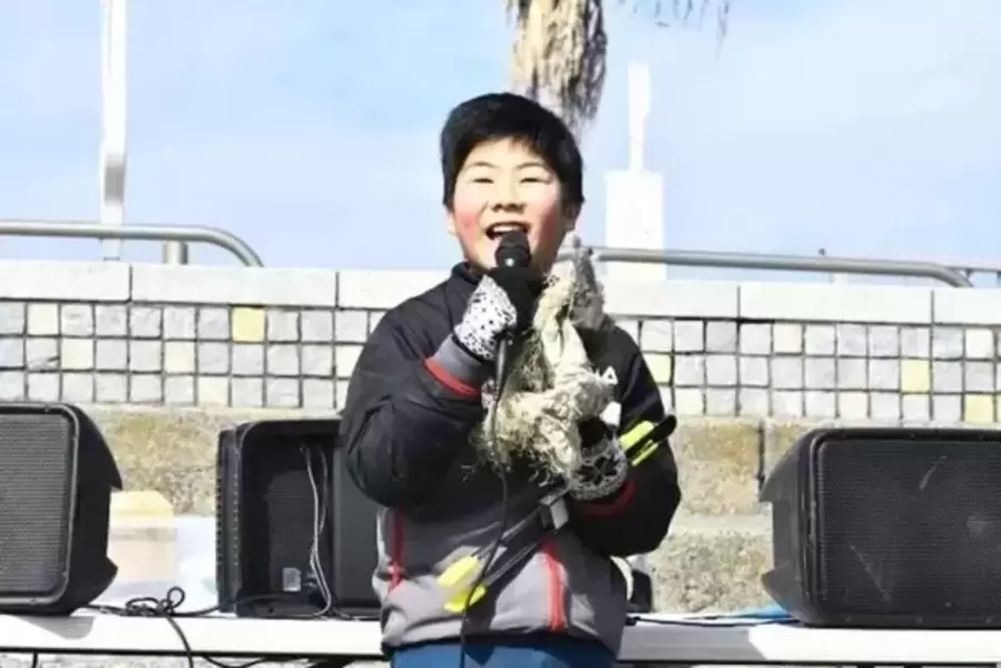 拾ったごみをみんなの前で発表して、どんなごみがあったかを共有するコーナーです。