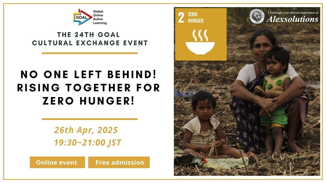 オンライン国際交流会で、「SDGs2:飢餓をゼロに」について、国境を越えて英語でディスカッションしてみませんか?日本人研修生による英語のプレゼンもご覧になれます。