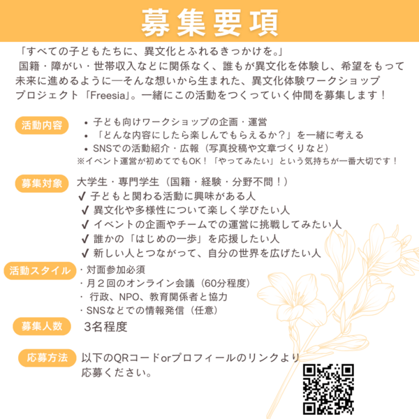 - 子どもたちに「世界」を届けよう!「Project Freesia」メンバー募集!