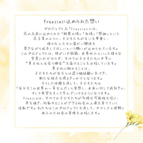 🌸異文化体験支援活動『Project Freesia』 誰かの「未来」に私が「そっと」関われたら
