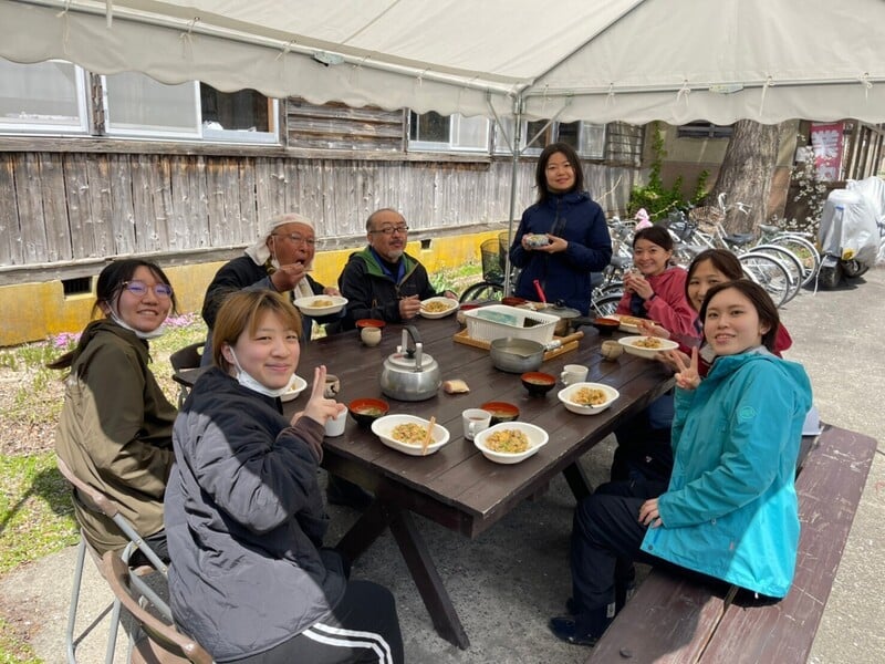 活動地のお母さんたちと交流会等。タイミングによっては、陸奥湾のホタテバーベキューも!