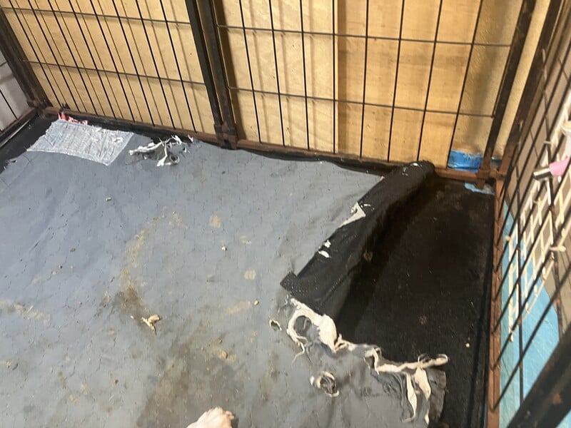 生まれつき足が動かないピットブルに敷いているトイレマットが、爪で引っかかるなどしてすぐボロボロになってしまいます。