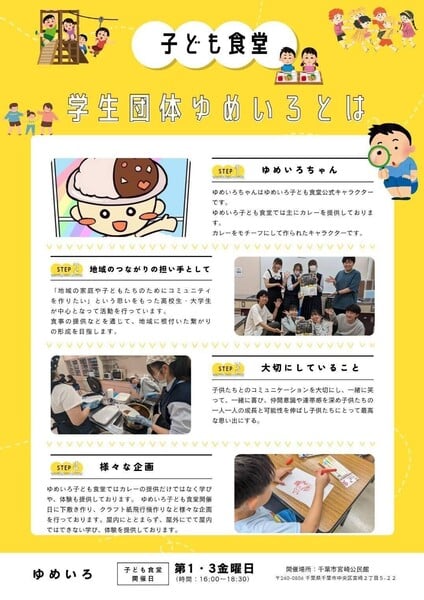 「ゆめいろ子ども食堂」を運営し、食事や季節イベント、課外活動を通じて、子どもたちに居場所と成長・笑顔の機会を提供しています。