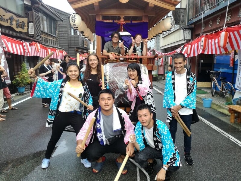 ③地域のお祭り「小木祭り」のサポート、太鼓演奏(夜に太鼓練習あり)