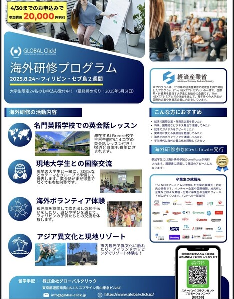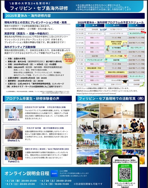 - [2週間」フィリピンのセブ島で海外研修募集 現地大学生との交流アリ♪