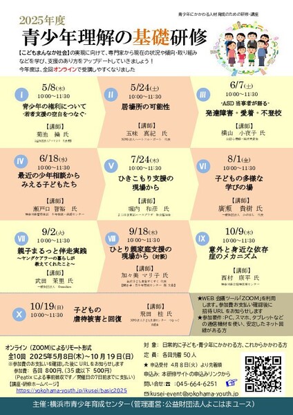 お申込みは、よこはまユースHP(https://yokohama-youth.jp/ikusei/basic2025/) |