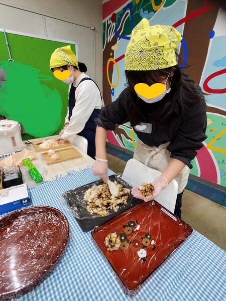 みんなでおむすびを作って、食べながら、おしゃべりします。